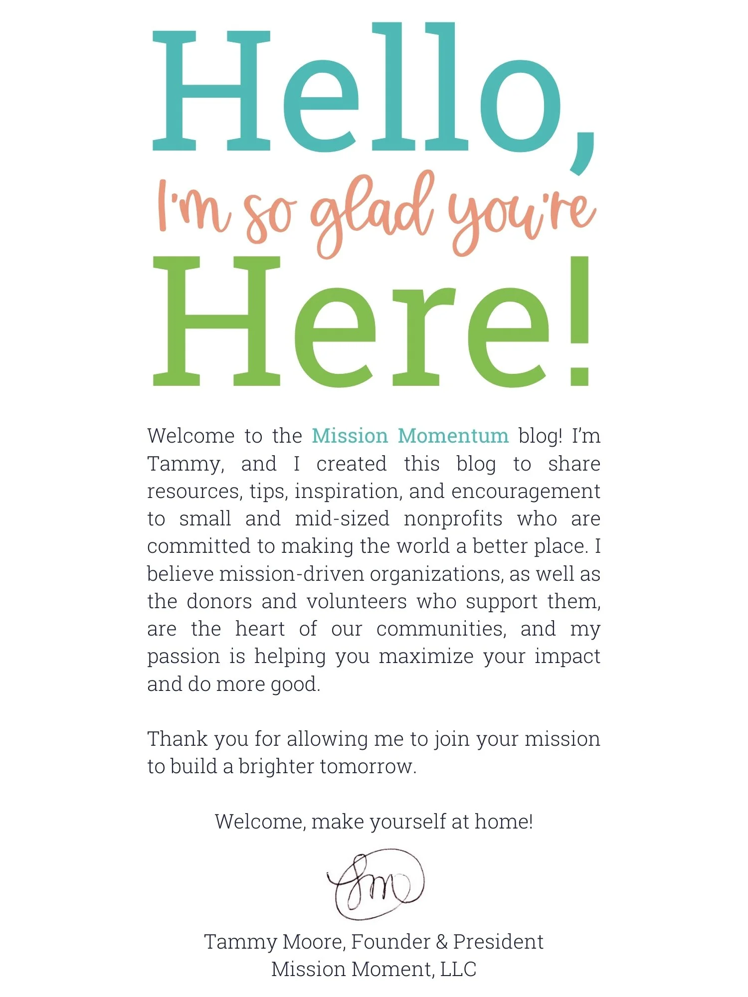 Welcome to Mission Momentum Inspiration Mar 9 Written By Tammy Moore Contact Us nonprofitfundraisingcharityorganizationdevelopmentinspirationimpact Tammy Moore